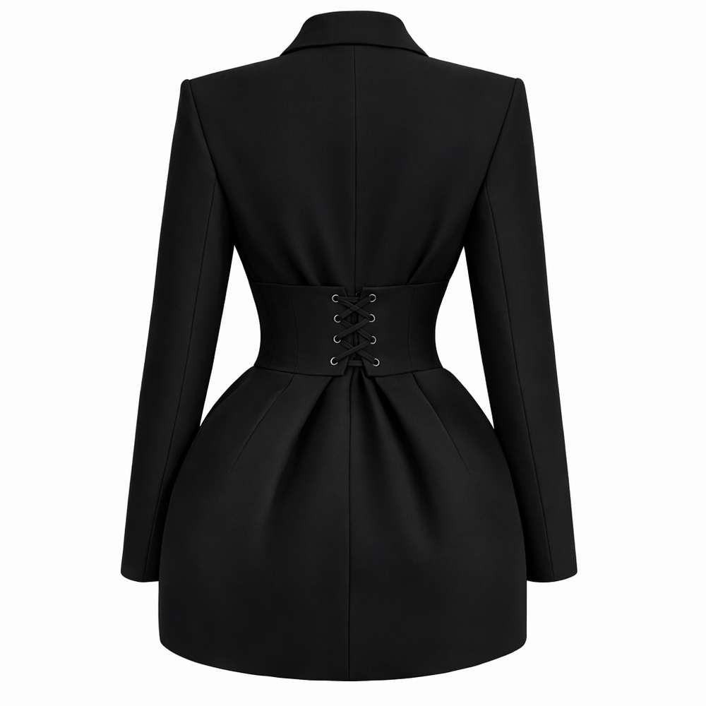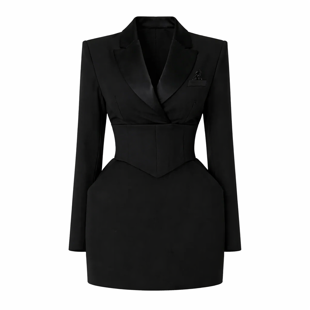 Elara – Abito Blazer Mini Elegante da Donna con Scollo a V, Vita Cinturata e Maniche Lunghe